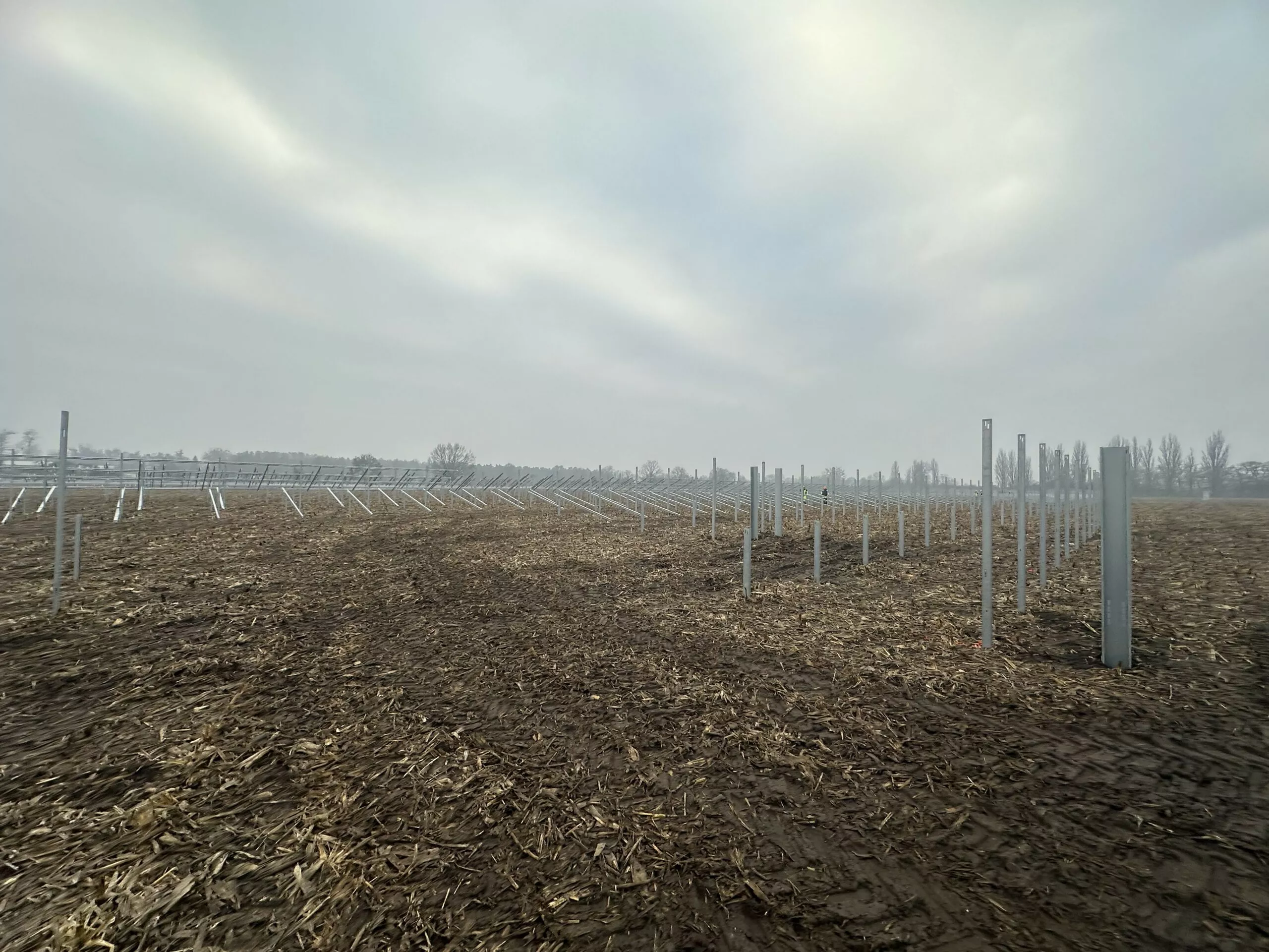 Na tym etapie zakończono prace przygotowawcze – teren został odpowiednio zagospodarowany, a konstrukcje wsporcze zamontowane. Wkrótce pojawią się na nich nowoczesne moduły, które zamienią promienie słońca w czystą energię elektryczną.