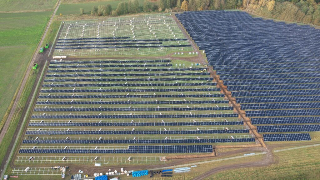 Farma powstaje krok po kroku, a jej rozwój można obserwować na własne oczy: od przygotowania terenu, przez montaż konstrukcji, aż po instalację tysięcy paneli, które będą produkować energię przez kolejne dekady.